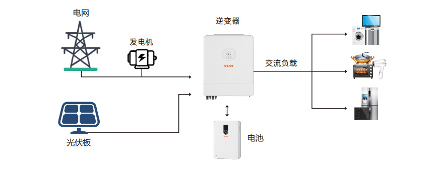 2. 光伏,逆變,市電旁路三種輸出模式